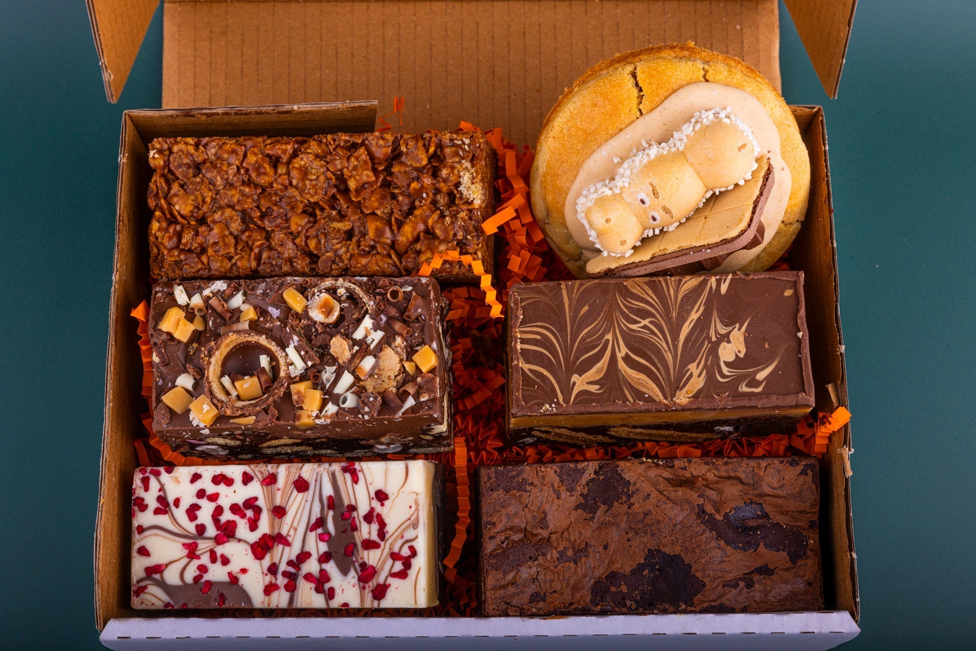 Our Premium Box is a monthly selection of bestsellers, premium favourites and seasonal goodies. Each box is curated with indulgent bakes, from brownies and cookies to rocky road and more, showcasing the very best of Rabbit Hole Cakes alongside exciting new flavours.