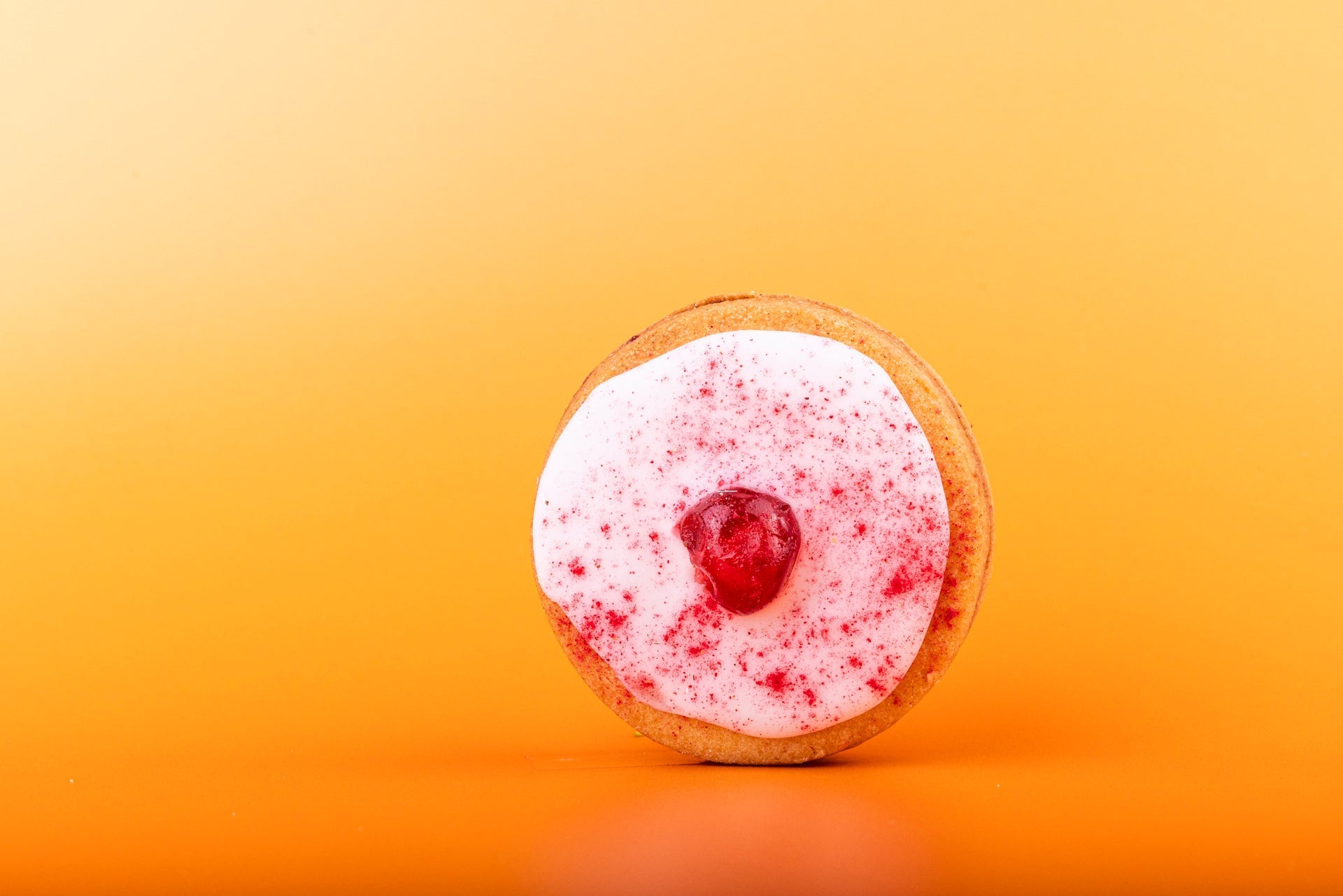 Our Empire Biscuit is a timeless classic. Two buttery shortbread biscuits are sandwiched with a sweet jam centre, topped with smooth white icing and finished with a bright glacé cherry. Simple, traditional and perfectly nostalgic.