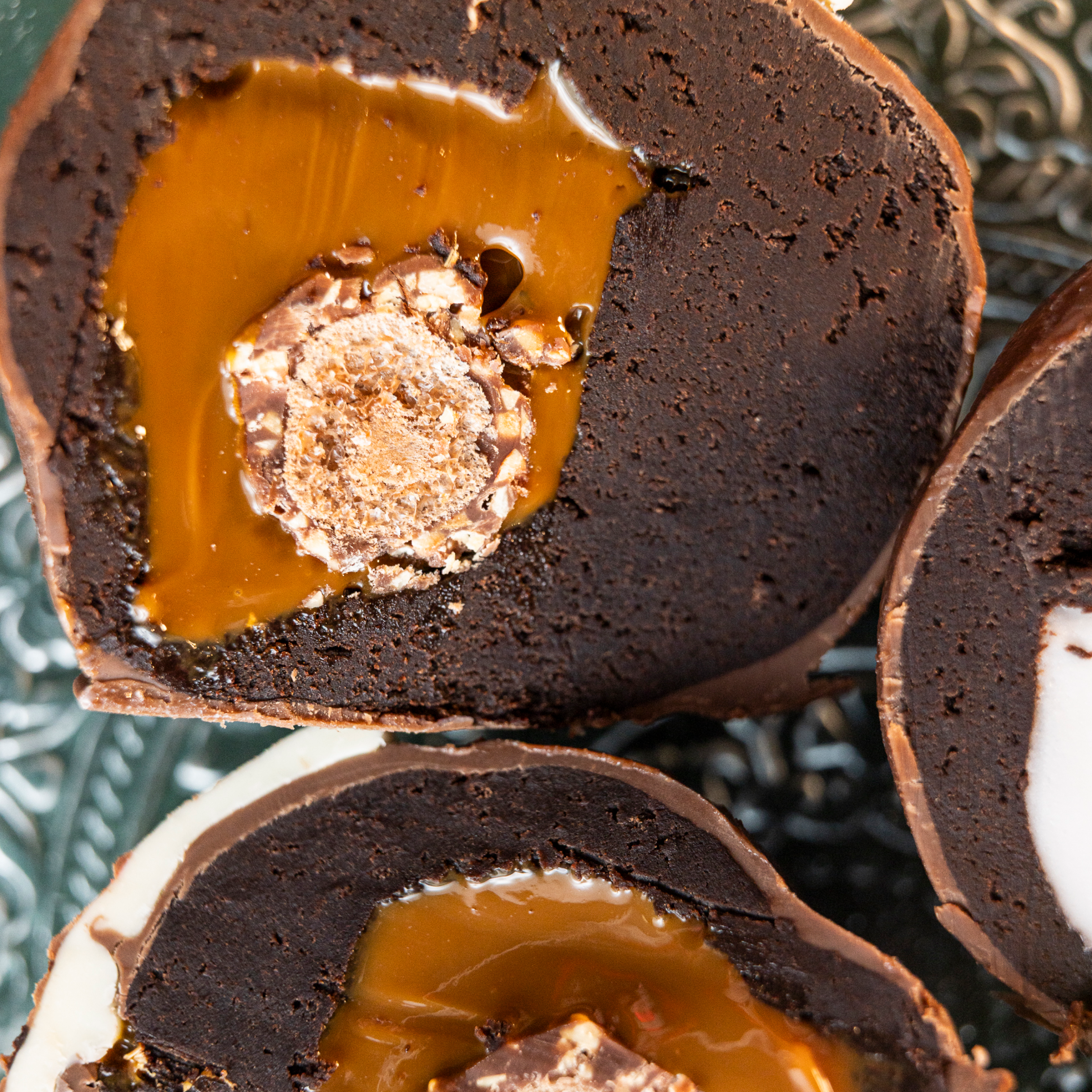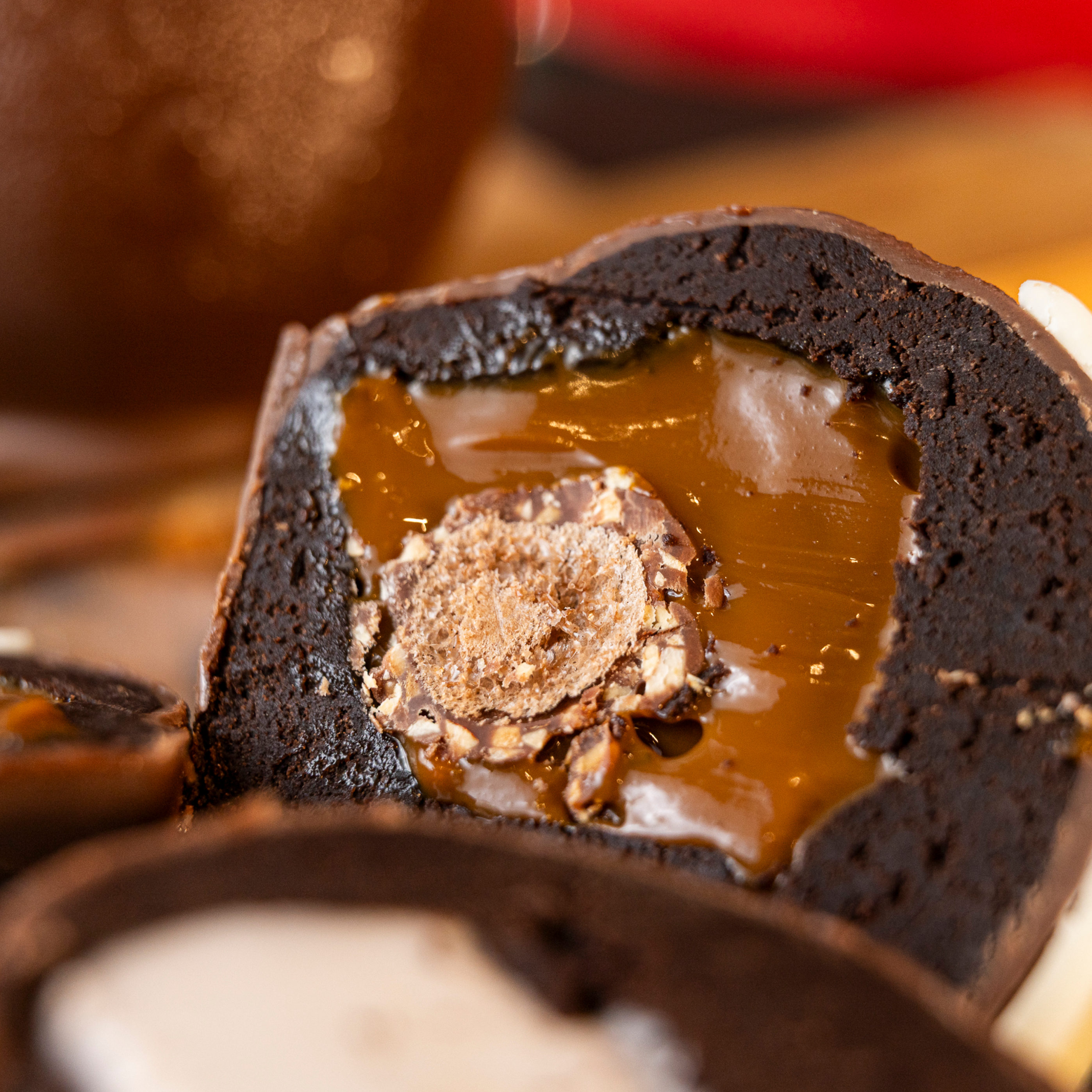 Rich, fudgy brownie meets festive indulgence in these beautiful Christmas baubles. Each one is handmade with love and filled with your choice of After Eight or Caramel & Ferrero Rocher flavours. Perfect for gifting, stocking fillers or adding a touch of sweetness to your Christmas dessert table.