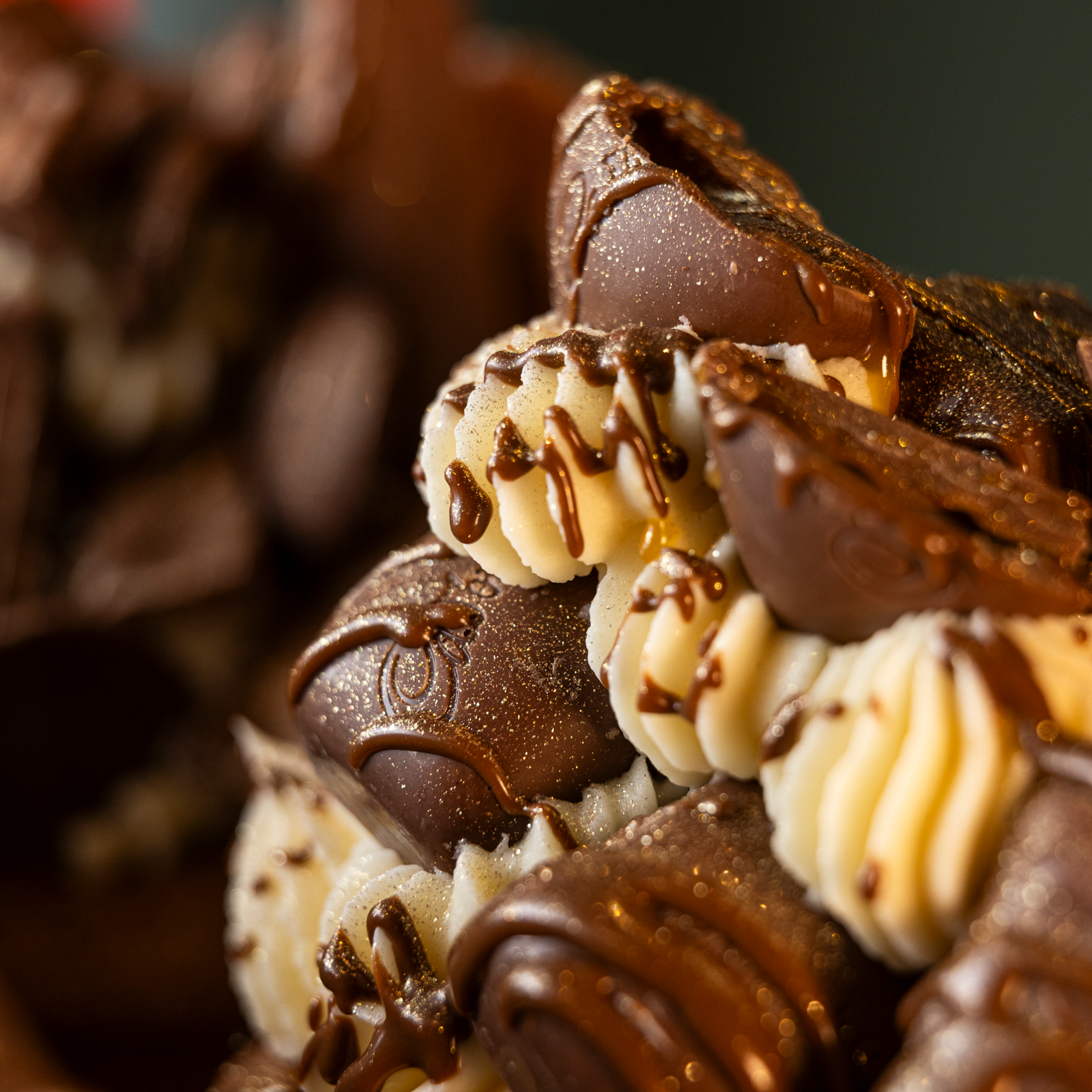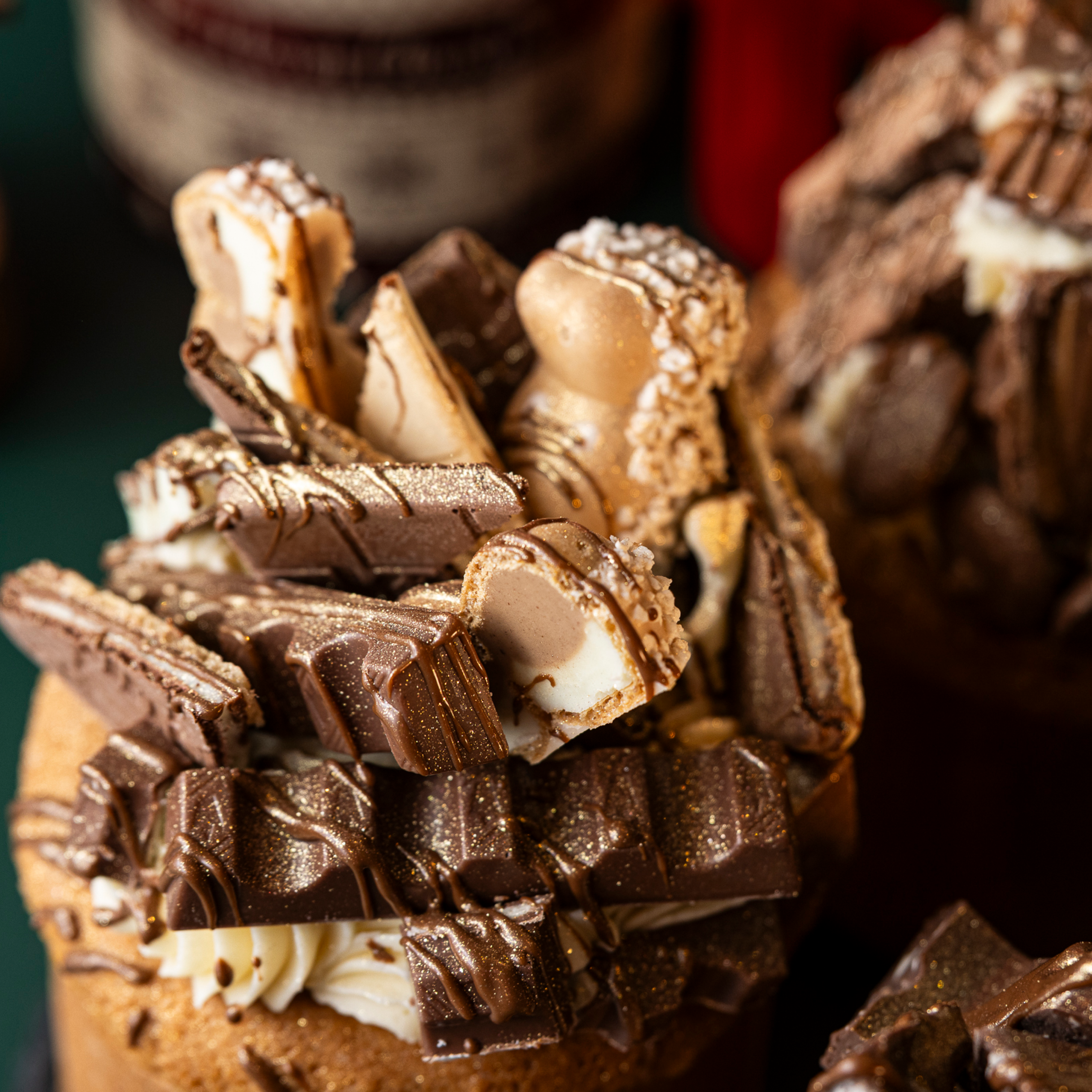 The perfect Christmas stocking filler, hand-wrapped and baked with love. Each mini cookie pie is filled with a rich, chocolatey centre and encased in golden, buttery cookie dough. Available in festive flavours including Kinder, Miniature Heroes, Mars & Caramel, and Toblerone & Ferrero Rocher.